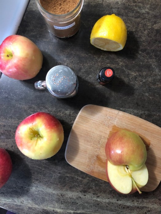 - Add 2tbsp of sweetener (if apples aren’t sweet) and 1/2 of the salt, lemon and spices.