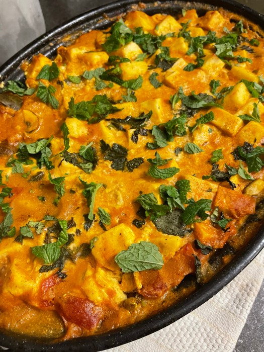 - Optional Step: When ready to layer everything, you can add the marinated paneer to a large pan/pot on the stove and quickly sear over medium-high heat to really infuse the paneer and add some extra flavouring before layering.
