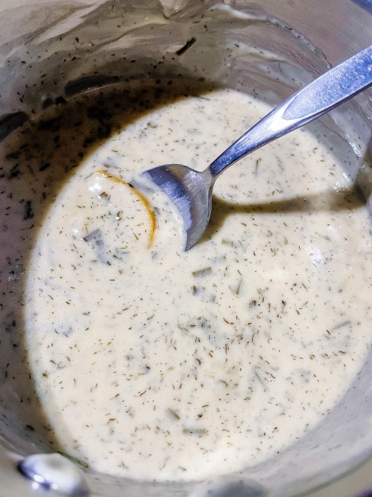 - 1/2 – 1 cup of fresh herbs from your garden such as dill, parsley, chives, green onions, sage, rosemary, oregano, etc.